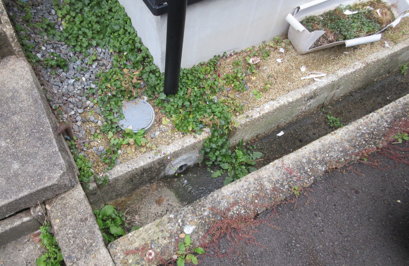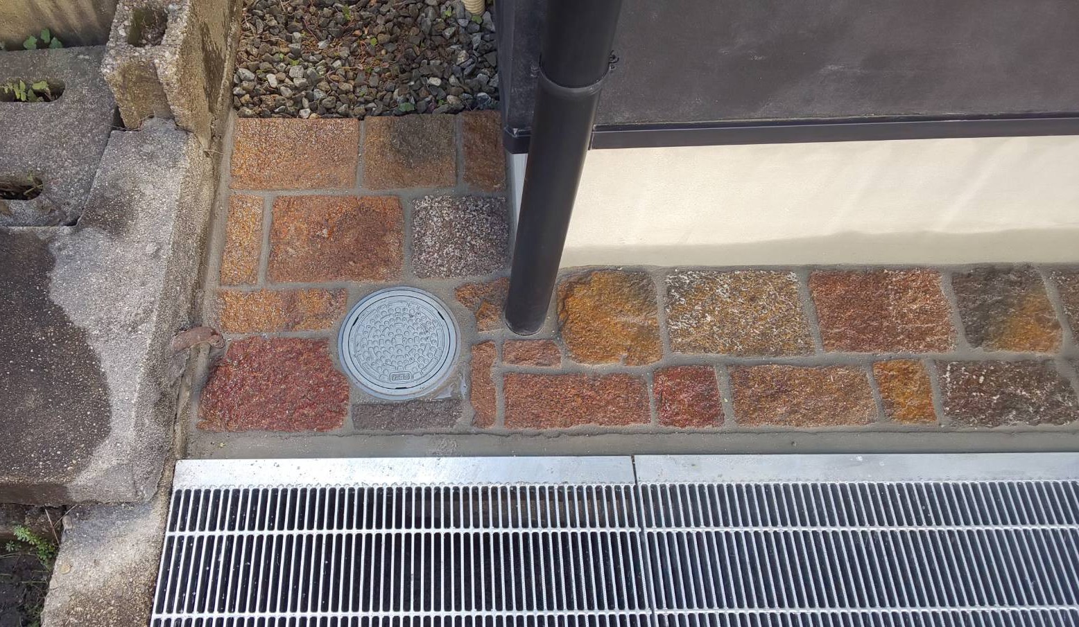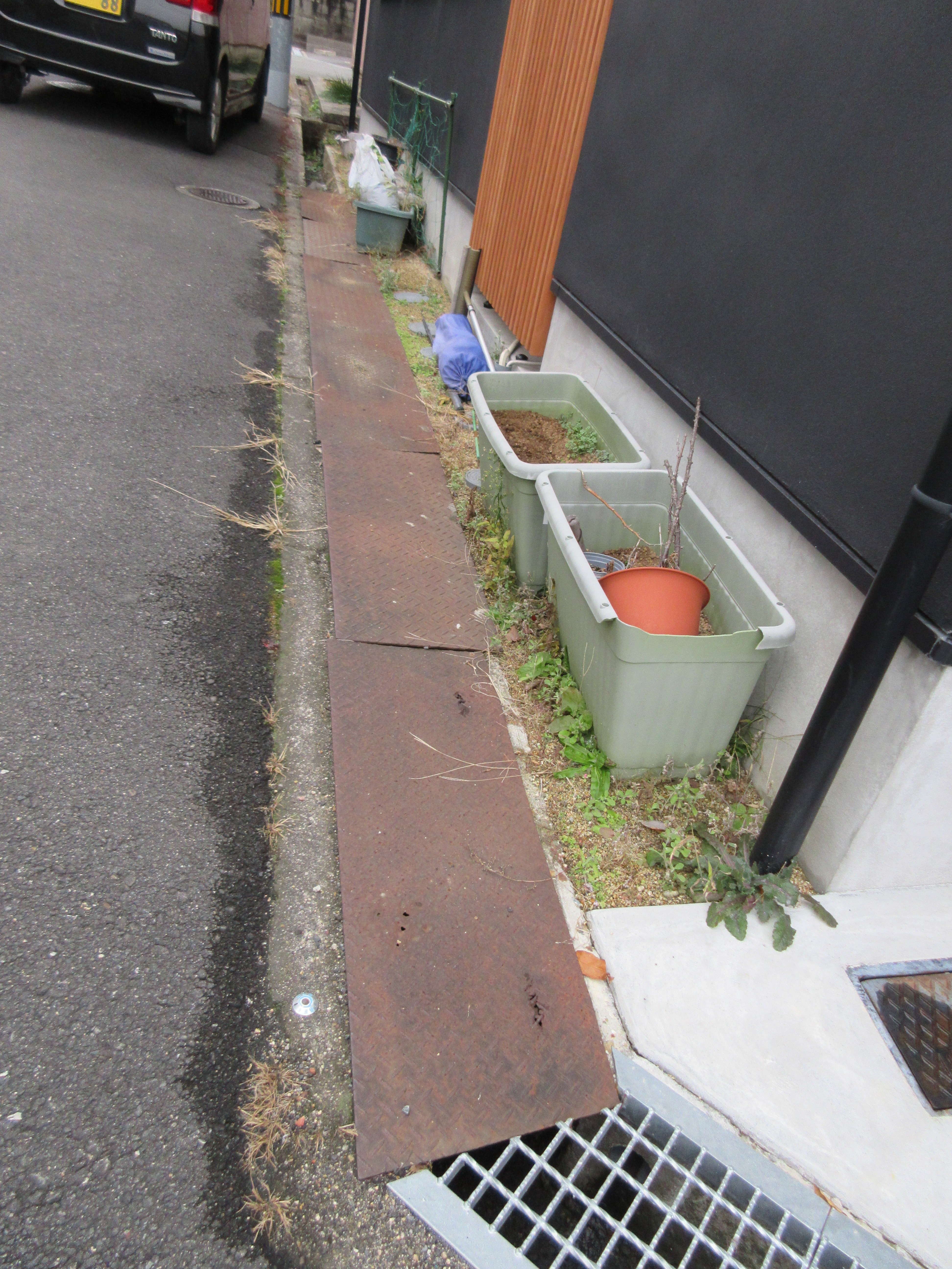 道路と敷地内で高低差があった側溝を補修し、グレーチングを新設しました。