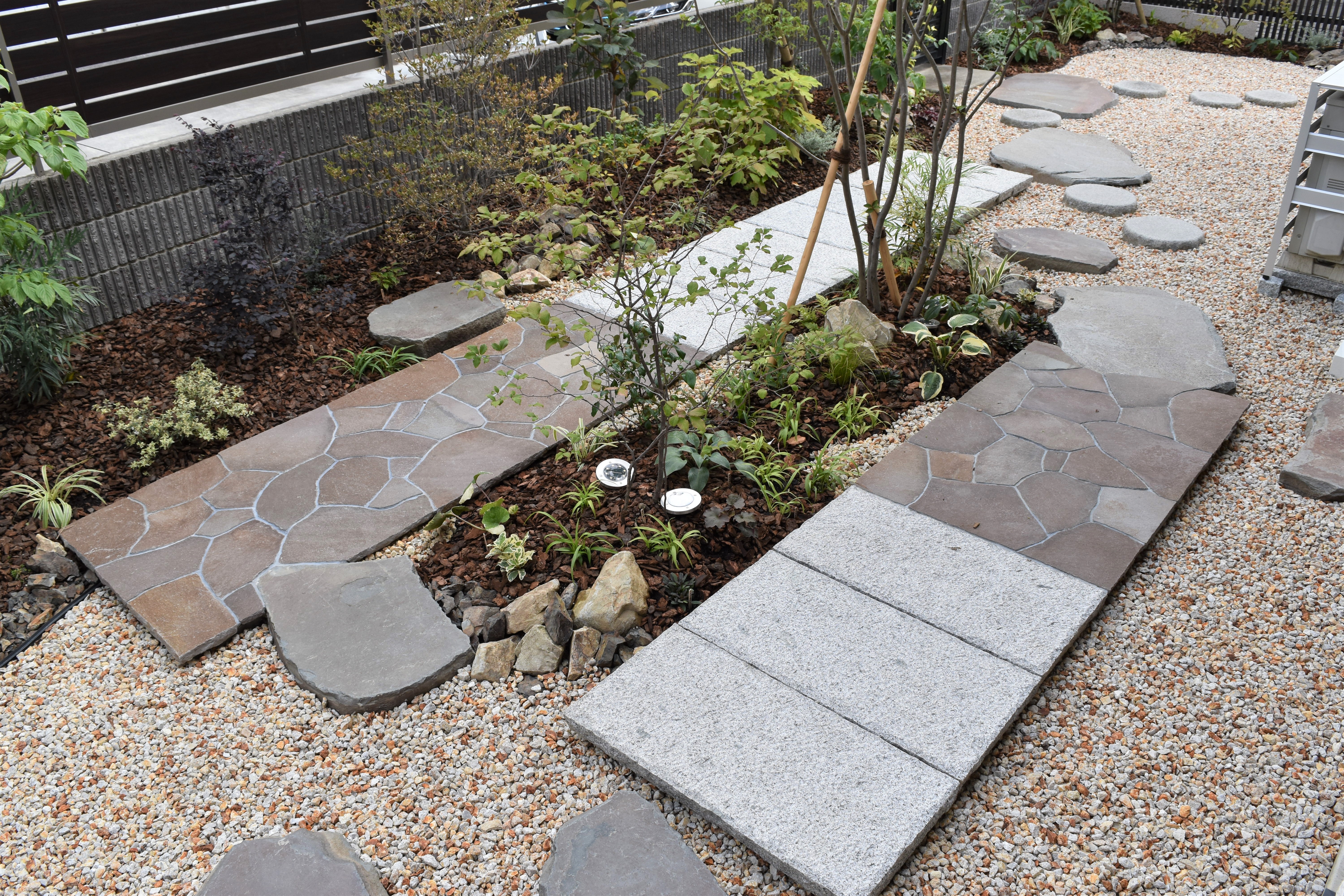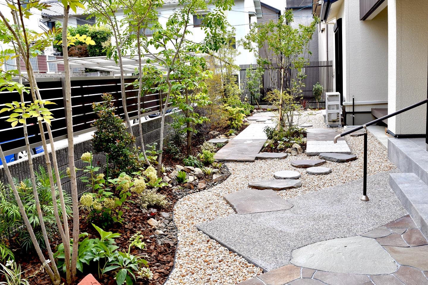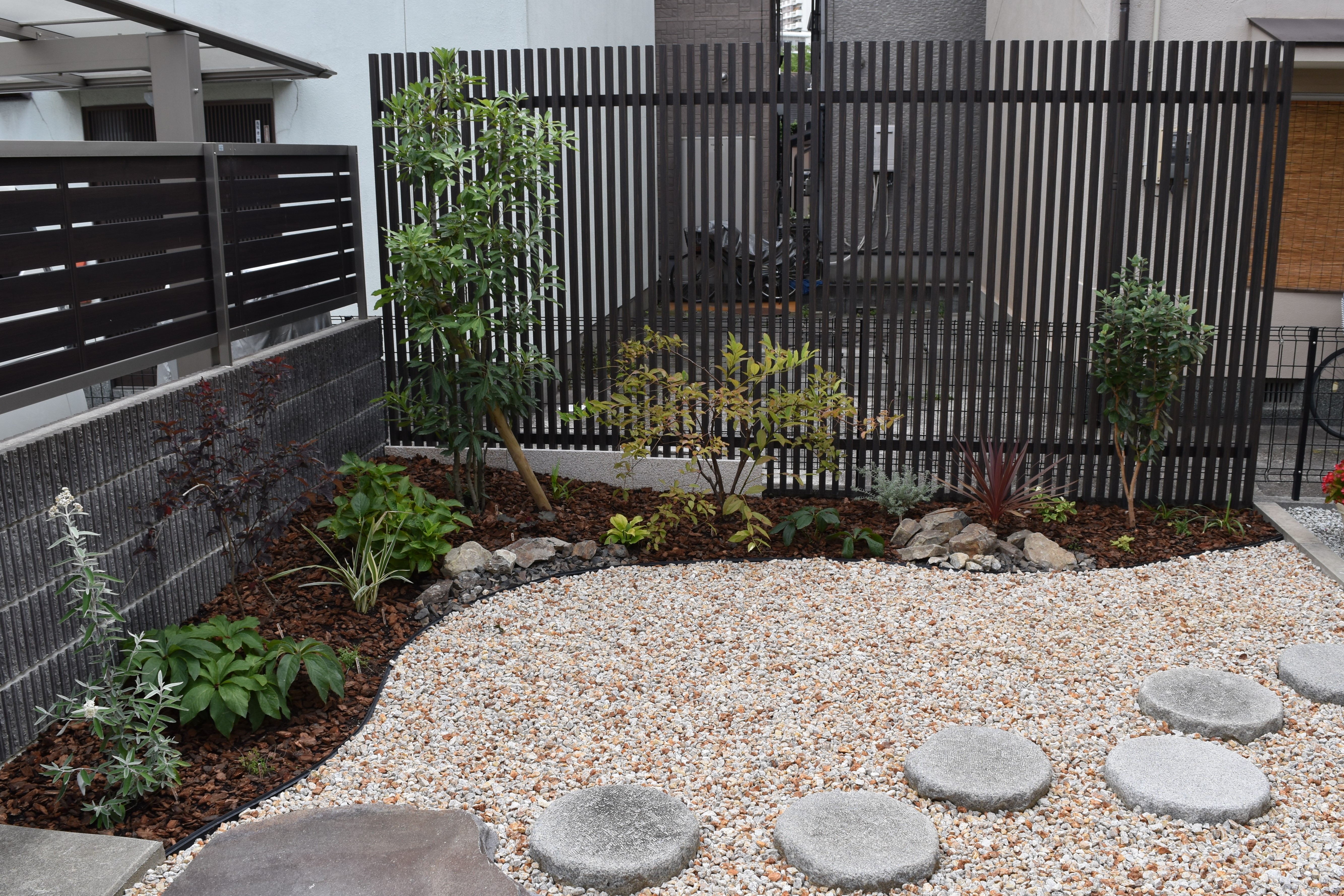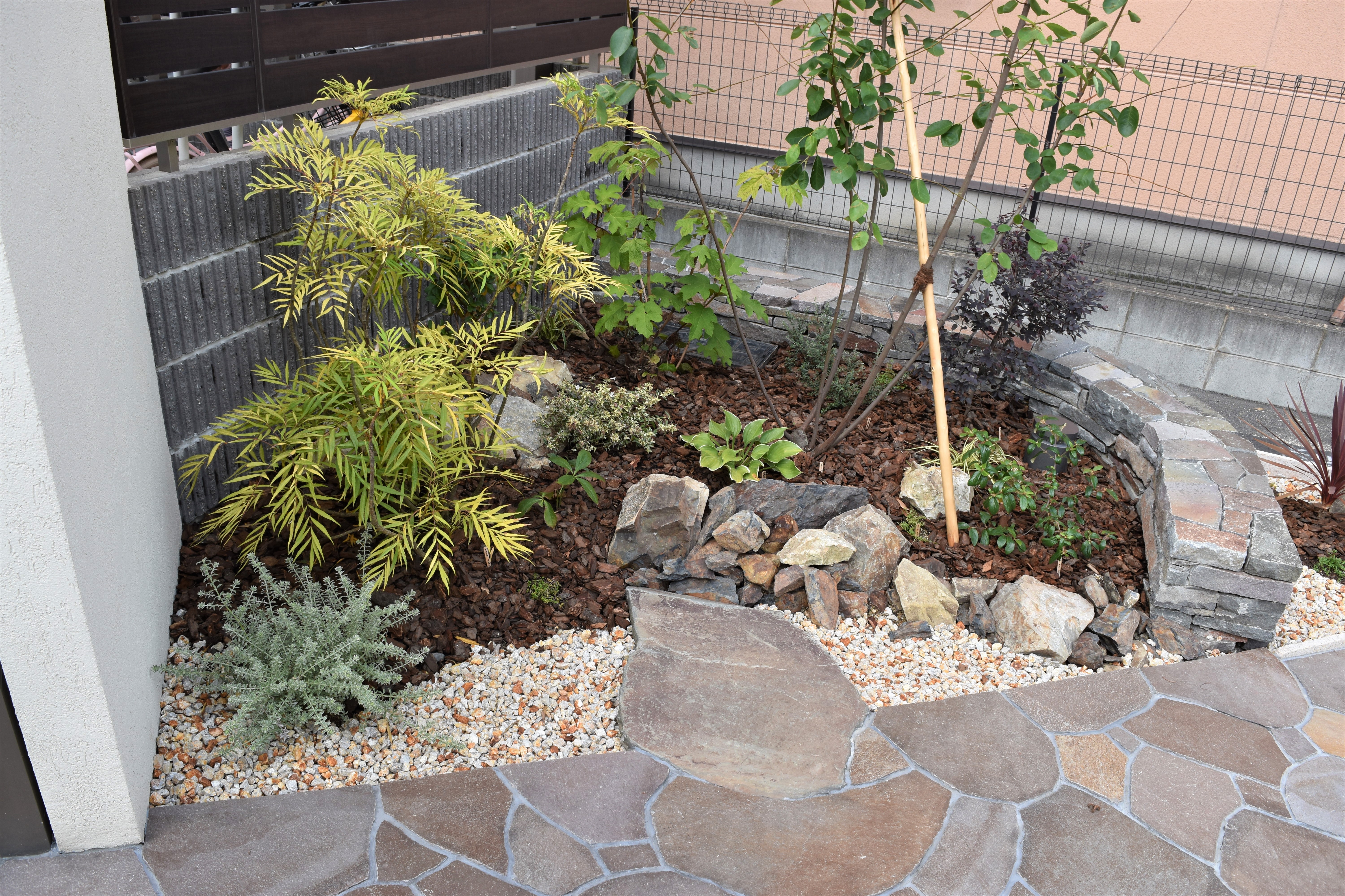 広いお庭も植栽と石材で見て楽しめるお庭に。