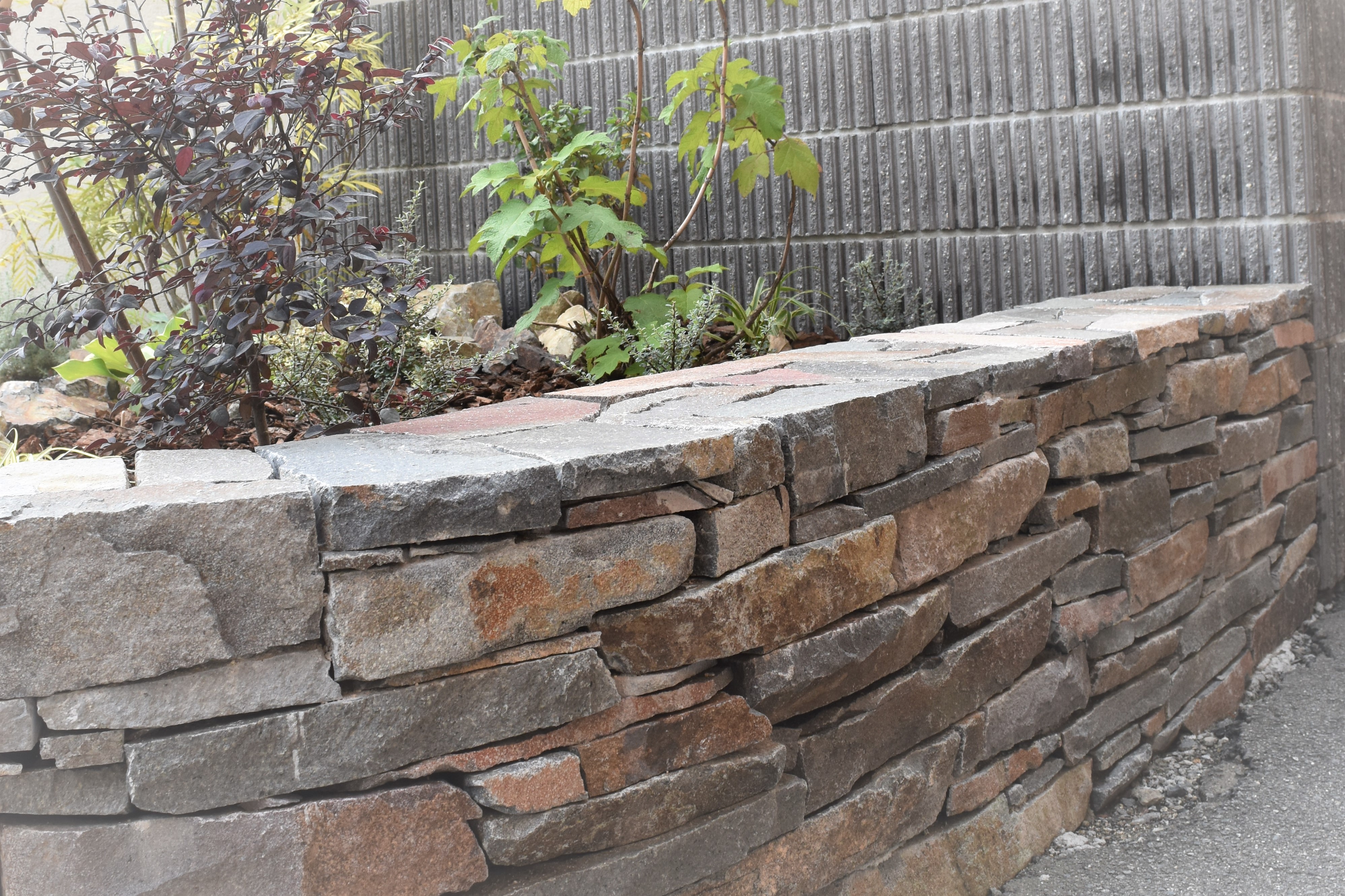 石積の花壇を造ることで、よりメリハリがつくようにしております。